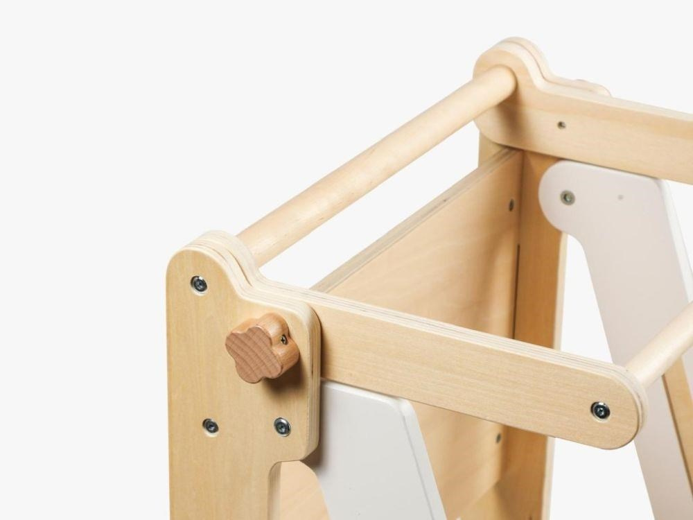 Skládací učící věž rostoucí 2v1 - lakovaná přírodní/bíla s kreslící tabulí