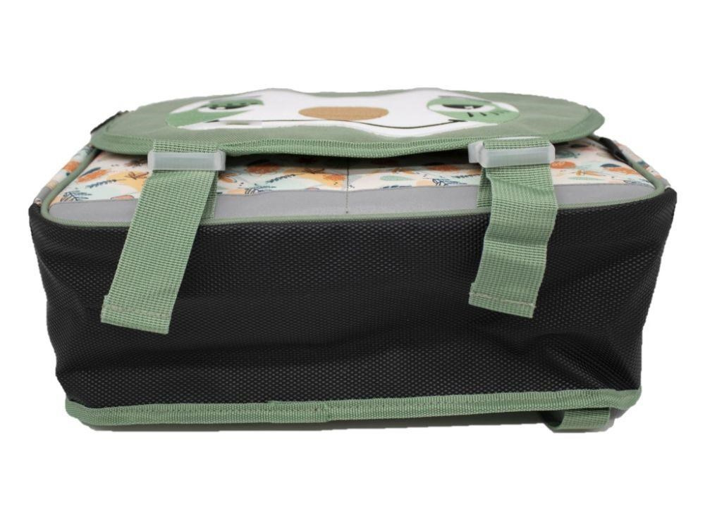 Aktovka (školský batoh) v neutrálnih farbách, s rozkošným lenochodom, je ideálnou školskou taškou pre prvákov. Veľký vnútorný priestor, do ktorého deti pohodlne uloží aj sešity vo formáte A4, 2 vnútorné priehradky, vnútorná kapsa na zips, všetko to uľahčí novopečeným školáčkom prípravu a upratovanie školských potrieb. Samozrejmosťou sú polstrované ramenné pásy, pútko, štítok na meno aj reflexné prvky.