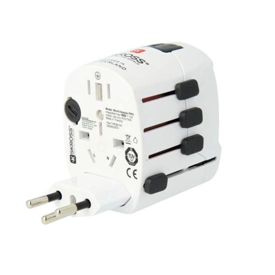 .SKROSS cestovní adaptér PRO World & USB, 6,3A max., uzemněný, vč. univerzální USB nabíječky, pro celý svět