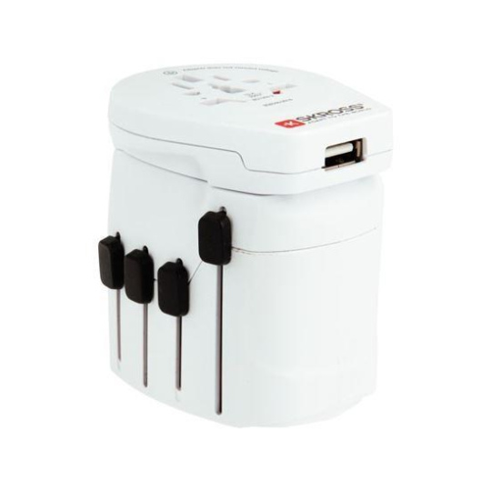 SKROSS cestovní adaptér PRO World & USB, 6,3A max., uzemněný, vč. univerzální USB nabíječky, pro celý svět