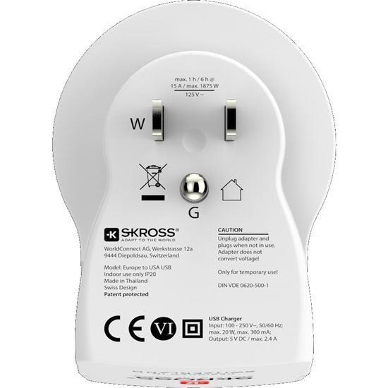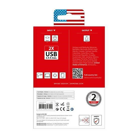 .SKROSS cestovní adaptér USA USB pro použití ve Spojených státech, typ B