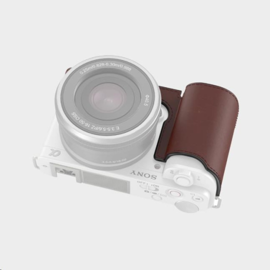 - Genuine leather half case with a custom fit for Sony ZV-E10 camera.