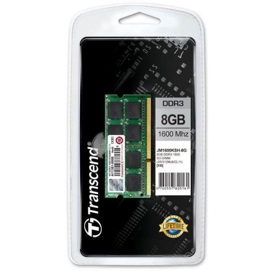 SODIMM DDR3 8GB 1600MHz TRANSCEND JetRam™, 512Mx8 CL11, maloobchodný predaj