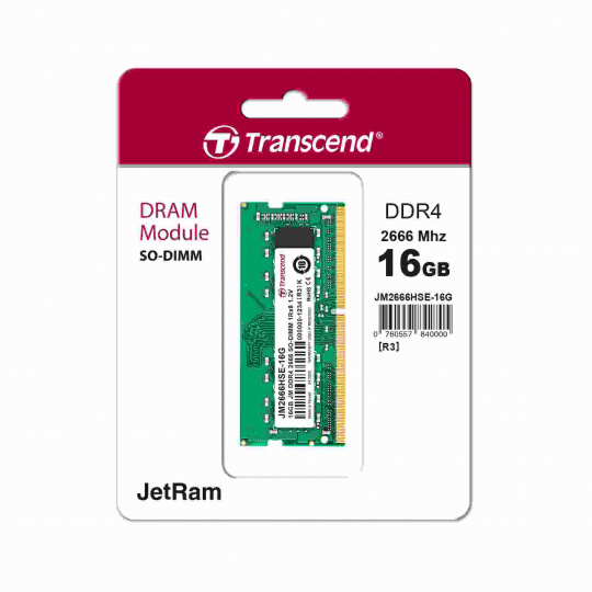 Pamäťové moduly JetRam spoločnosti Transcend sa vyrábajú s pravými značkovými čipmi DRAM triedy ETT, ktoré prešli prísnym procesom kontroly spoločnosti Transcend a prísnym environmentálnym testovaním. Moduly poskytujú vynikajúcu kompatibilitu a plne testovanú spoľahlivosť, ktorá je ideálna na modernizáciu počítača za atraktívnu cenu. Každý pamäťový modul má frekvenciu 2666 MHz, čo výrazne zvyšuje účinnosť prenosu dát vďaka vyššej šírke pásma až do 21 GB/s. Pracuje pri menovitom napätí len 1.2 V, pamäť DDR4 SO-DIMM JetRam od spoločnosti Transcend zabezpečuje zníženie prevádzkovej teploty aj elektrického zaťaženia pamäťového radiča s cieľom ušetriť až 40 % energie v porovnaní so štandardnými modulmi DDR3, ktoré ponúkajú 1.5V.