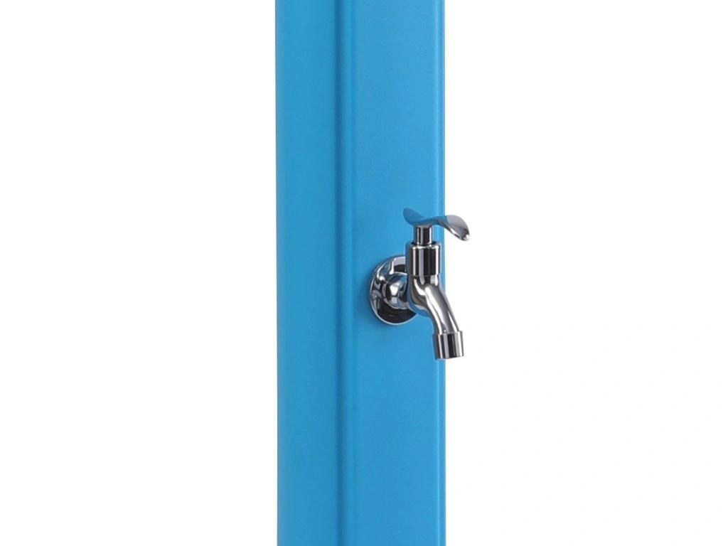 Designová solárna sprcha v modrej farbe, ktorá osvieži každú záhradu. Sprcha je vyrobená z kvalitného PVC odolného voči UV žiareniu, má zásobník o objeme 25 l a výšku 215 cm. Je vybavená praktickým kohútikom na oplach nohou. Sprcha vyniká svojím minimalistickým prevedením. Pripojenie na prívod vody je veľmi jednoduché pomocou hadicovej rýchlospojky (súčasť balenia).