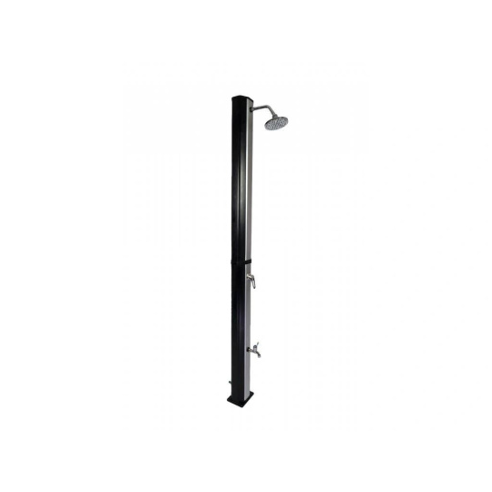 Veľmi obľúbená solárna sprcha s veľkou sprchovou hlavicou, ktorá zabezpečuje príjemné sprchovanie, pripomínajúce ľahký letný dážď. Sprcha je vyrobená z kvalitného PVC odolného voči UV žiareniu a vďaka prednej časti imitujúcej nerez pôsobí luxusným dojmom. Má XL zásobník s objemom 35 l, je vysoká 217 cm a je vybavená praktickým kohútikom na oplach nôh. Pripojenie na prívod vody je veľmi jednoduché pomocou rýchlospojky na hadicu (súčasťou balenia). Sprcha je dvojdielna, takže ju je možné ľahko zložiť a premiestniť na iné miesto.