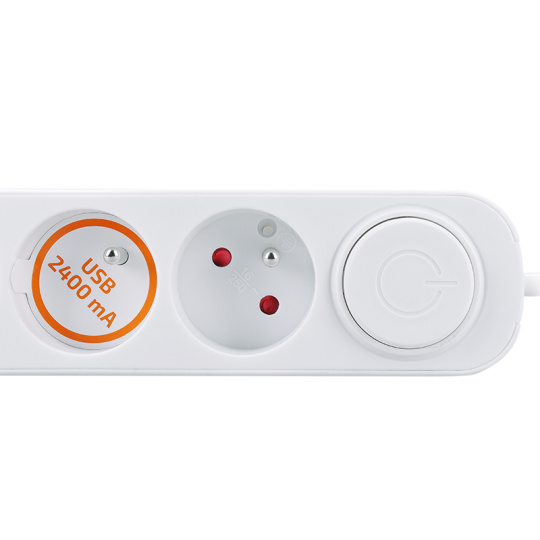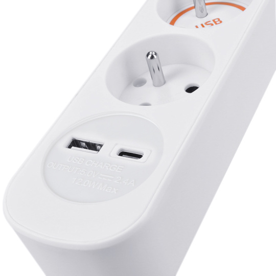 .Solight 3z prodlužovací přívod s USB A+C nabíječkou 2.4A, 2m, 3 x 1mm2, bílý, vypínač