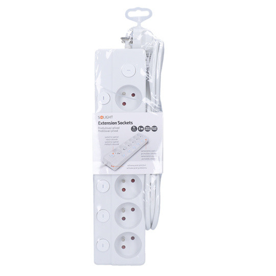 .Solight 6z prodlužovací přívod, 2m, 3 x 1mm2, bílý, 6+1 vypínač