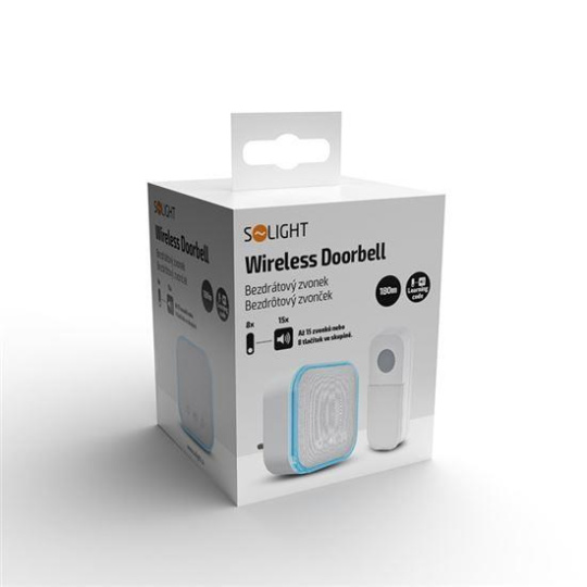 .Solight bezdrátový zvonek, do zásuvky, 180m, bílý, learning code