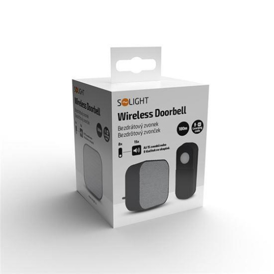.Solight bezdrátový zvonek, do zásuvky, 180m, černý, learning code
