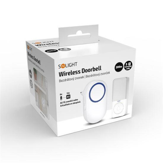 .Solight bezdrátový zvonek, do zásuvky, 200m, bílý, learning code