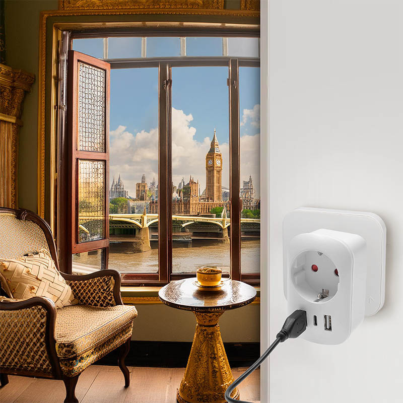 - pre obyvateľov Európy navštevujúcich Anglicko a krajiny s UK štandardom, zásuvky typu G