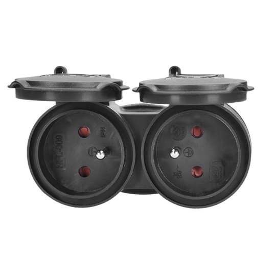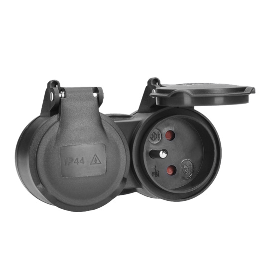 .Solight dvojzásuvka do vlhka, IP44, černá