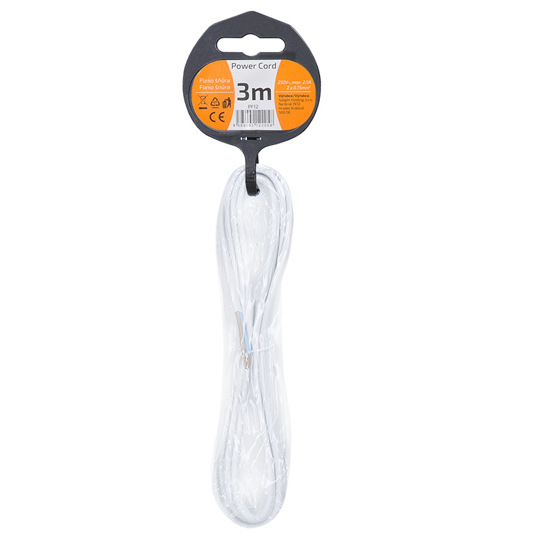 .Solight flexo šňůra, 2x 0,75mm2, bílá, plochá, 3m