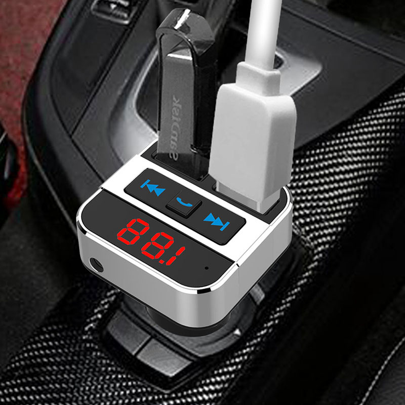 - bluetooth FM vysielač na prehrávanie hudby z multimediálnych zariadení, mp3 prehrávač, autonabíjačka + handsfree