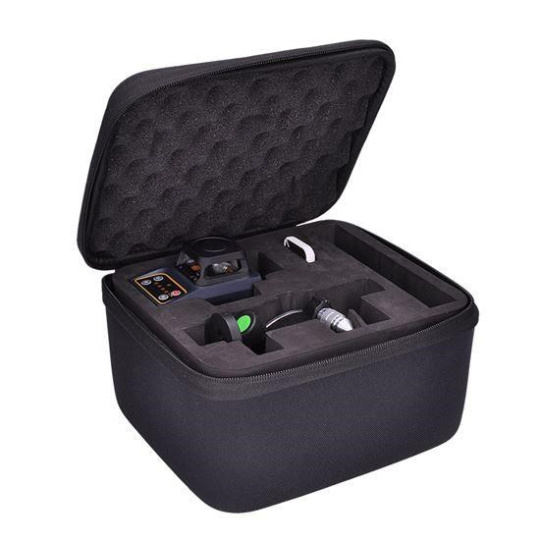 obsah balenia: vodováha, návod, malý statív, držiak, terčík, diaľkový ovládač, brašna, napájací kábel