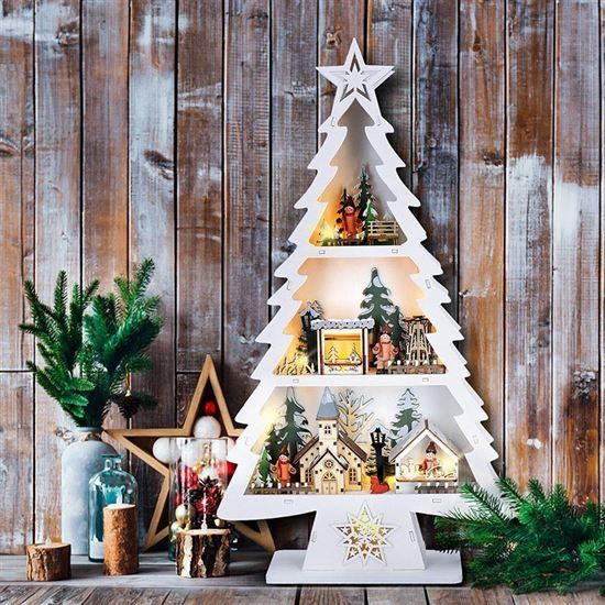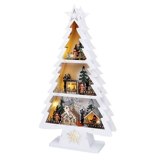 .Solight LED dřevěný vánoční stromek s dekoracemi, 13x LED, bílá, 53cm, 2x AA