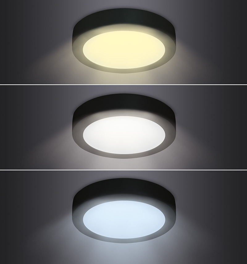 .Solight LED mini panel CCT, přisazený, 24W, 1800lm, 3000K, 4000K, 6000K, kulatý, černá barva