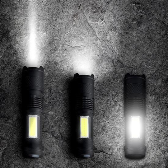 .Solight LED nabíjecí kapesní svítilna se zoomem, 100lm + 70lm, Li-Ion, USB, černá
