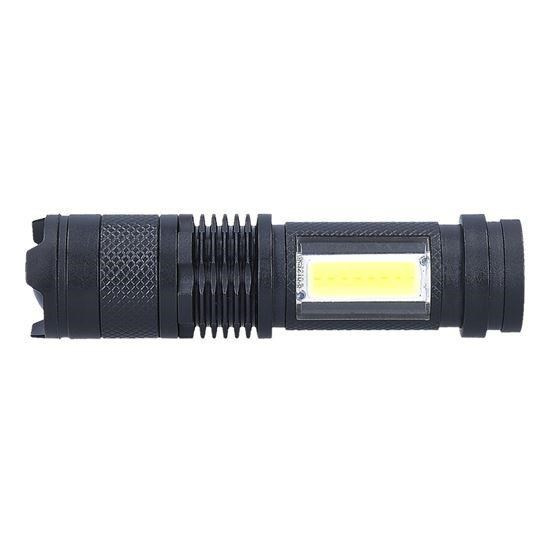 nabíjacia LED kapesná svietidlo s USB konektorom svietivosť: 100lm + 70lm (predné + bočné) 3 režimy svietenia: 100% predné , prerušované (blikajúce) predné, 100% bočné outdoorové použitie (stupeň krytia IP44) nastaviteľný kužeľ svetla (zoom) výdrž batérií min/max: 1hod./2hod. doba nabíjania: 2hod. batéria: 3.7V 400mAh Li-Ion napájanie: USB konektor rozmery: 100 x 26mm farba: čierna balenie: displej box 6ks