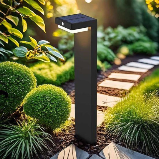 LED stĺpové osvetlenie so solárnym panelom a svetelným a pohybovým čidlom
