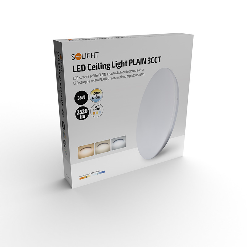 .Solight LED stropní světlo Plain, 3CCT, 36W, 2520lm, 3000K, 4000K, 6000K, kulaté, 45cm