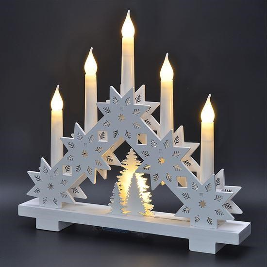 LED vianočný drevený svietnik s dekorom hviezd