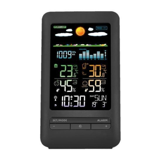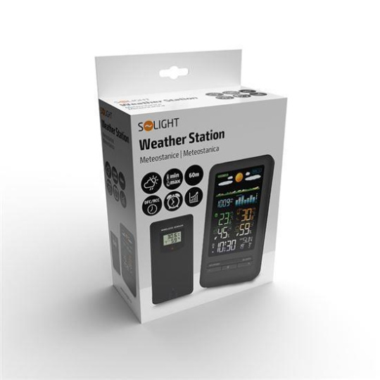 .Solight meteostanice, barevný LCD, vnitřní/venkovní teplota a vlhkost, tlak, RCC, černá