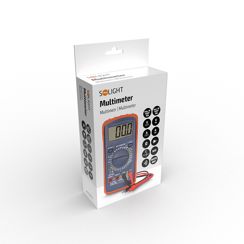 .Solight multimetr, max. AC 600V/10A, max. DC 600V/10A, test diody, bzučák, hFE, kapacita, odpor