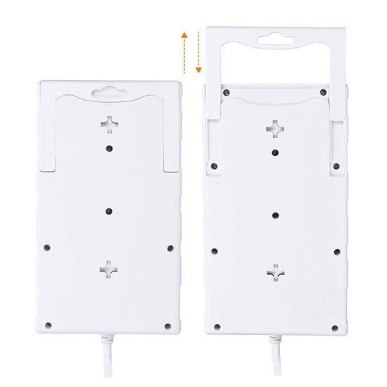 Robustný, dva metre dlhý prívodný kábel poskytuje flexibilitu pri umiestnení. Dve oddelené zásuvky pojmú aj väčšie napájacie adaptéry bez prekážania ostatným zásuvkám. Výsuvný držák na zadnej strane slúži na usporiadanie káblov, príp. na zavesenie alebo prenášanie. Nechýbajú ani montážne otvory pre pevné uchytenie.