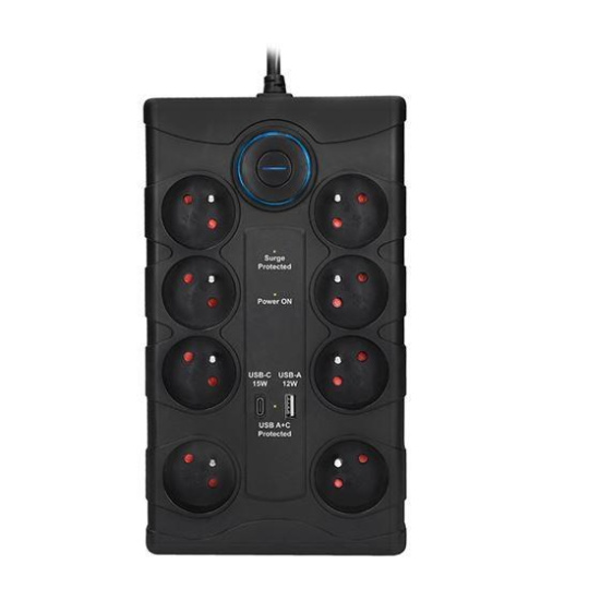 Spoľahlivá prepaťová ochrana s integrovanou USB nabíjačkou chráni vaše zariadenia pred náhlymi výkyvmi napätia. Vďaka ôsmim zásuvkám a dvom USB portom je ideálna do domácnosti aj kancelárie. S maximálnou záťažou až 3680 W zvládne aj energeticky náročnejšie spotrebiče.
