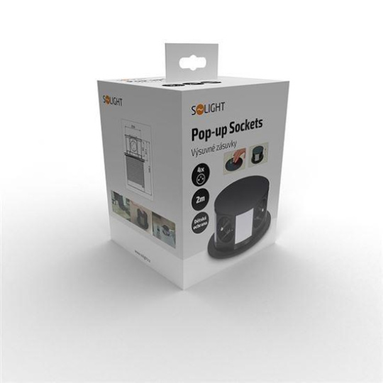 .Solight prodlužovací přívod, 4 zásuvky, černý, 1,5m, výsuvný blok zásuvek, kruhový tvar