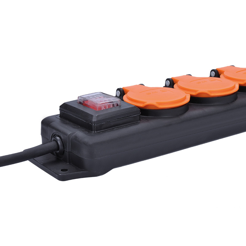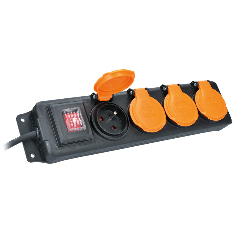 .Solight prodlužovací přívod IP44, 4 zásuvky, gumový kabel, vypínač, venkovní, 10m