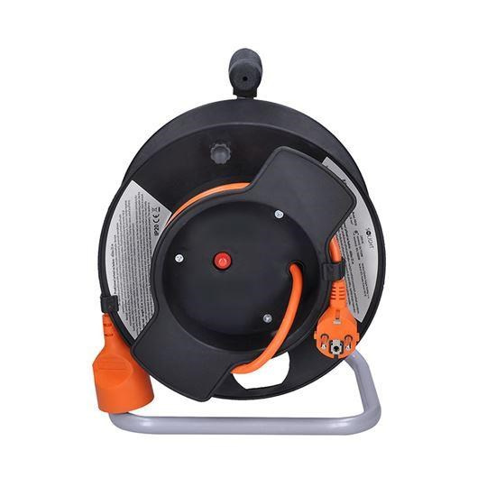 Maximálne zaťaženie 3680 W (16 A pri 230 V~) zabezpečuje bezpečný prevádzku pre väčšinu bežných zariadení. Ergonomická rúčka umožňuje jednoduché prenášanie a rýchle navíjanie kábla. Ideálny pomocník pre domácich majstrov, údržbu alebo drobné práce okolo domu.
