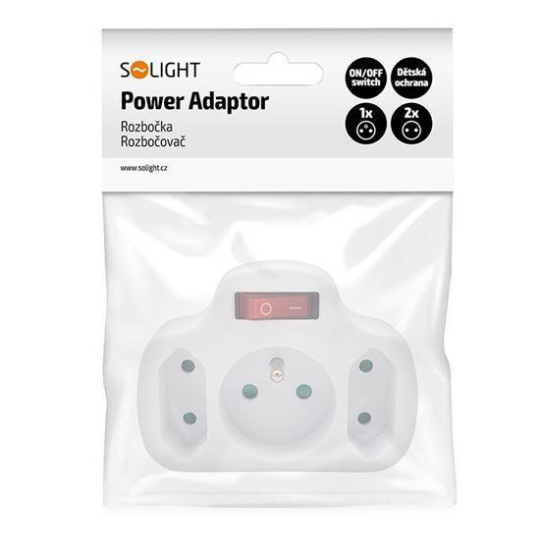 Solight rozbočka, 1x 10A + 2x 2,5A, bílá, vypínač