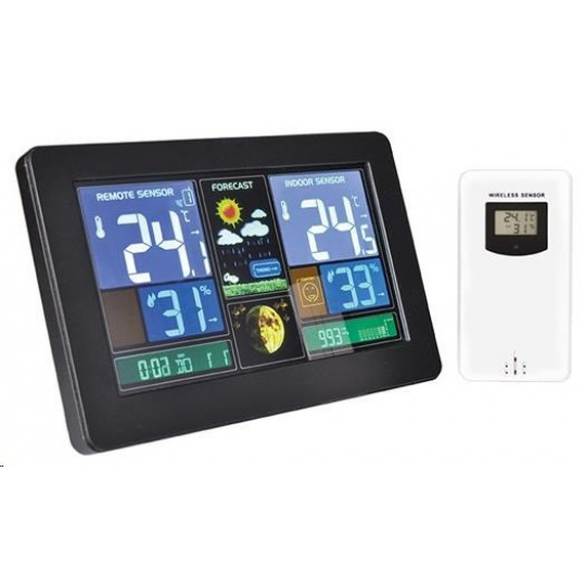 .Solight TE81 meteostanice, extra velký barevný LCD, teplota, vlhkost, tlak, RCC, USB nabíjení, černá