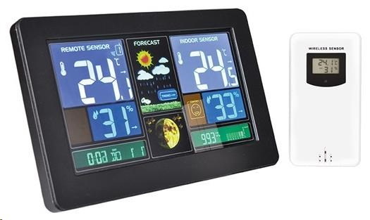 .Solight TE81 meteostanice, extra velký barevný LCD, teplota, vlhkost, tlak, RCC, USB nabíjení, černá