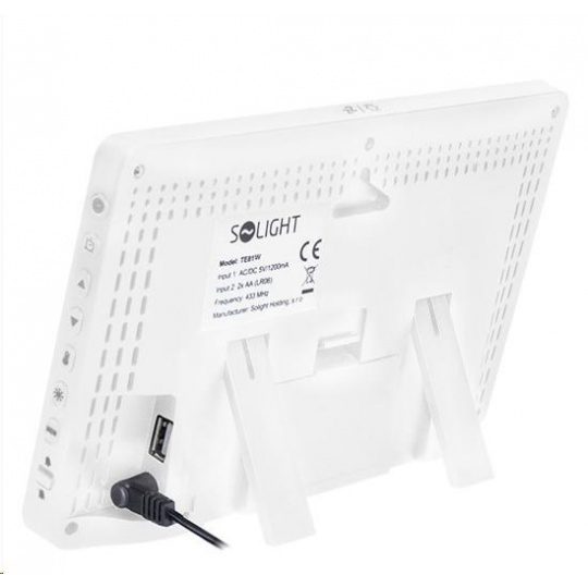 .Solight TE81W meteostanice, extra velký barevný LCD, teplota, vlhkost, tlak, RCC, USB nabíjení, bílá