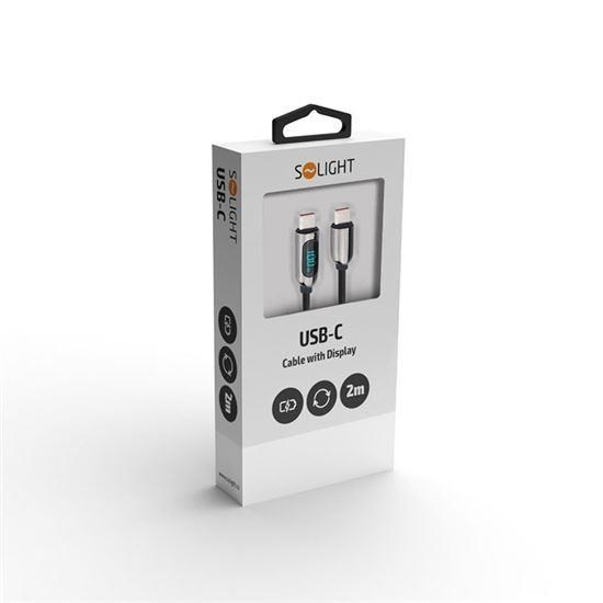 .Solight USB-C kabel s displejem, USB-C konektor - USB-C konektor, 100W, 2m