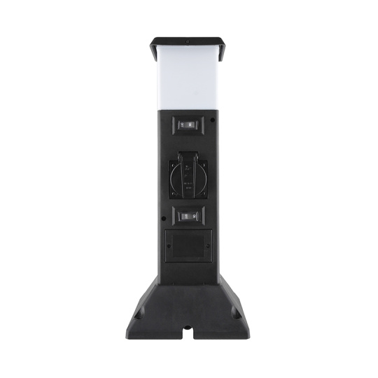 .Solight zahradní sloupek IP44 s LED osvětlením, plast, 2 zásuvky, hranol, černý