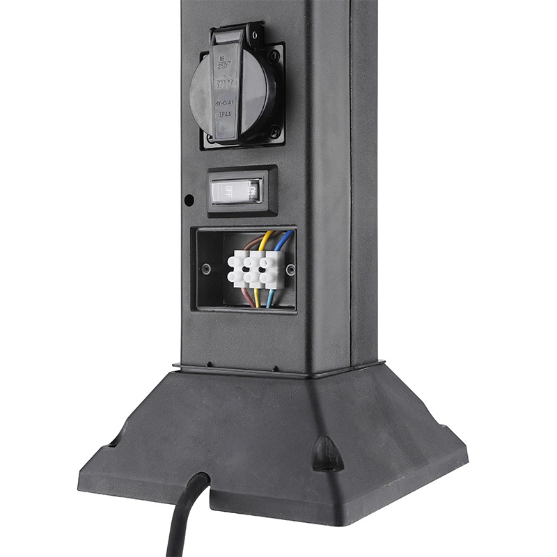 .Solight zahradní sloupek IP44 s LED osvětlením, plast, 2 zásuvky, hranol, černý