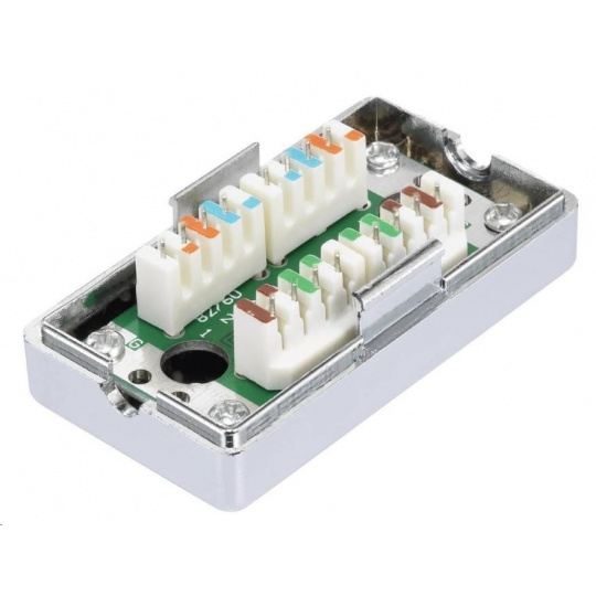Propojovací box umožní propojit dva kabely STP Cat5E při zachování parametrů Cat5E