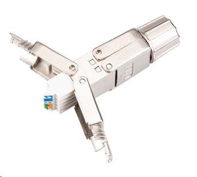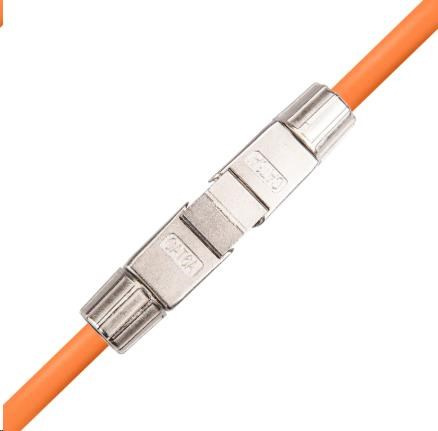 Malý beznástrojový box pro propojení kabelů Cat6A bez ztráty vlastností.