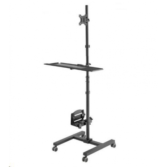 Pojazdný stojan na PC monitor a klávesnicu Fiber Mounts AX793 Profesionálne riešenie pre Vaše mobilné PC pracovisko - mobilný stojan na PC Potrebujete si vytvoriť pojazdné PC pracovisko za čo najlepšiu cenu? Máme pre Vás kompletné riešenie za bezkonkurenčnú cenu - pojazdný stojan s držiakom na PC, držiakom na monitor a policou na klávesnicu. Všetko je pritom ergonomické - nastaviteľná výška, náklon a natočenie monitoru, nastaviteľná výška klávesnice a myši, výškové nastavenie držiaku PC, pojazdové kolieska s aretáciou. Farebné prevedenie čierne, záruka 3 roky. Stojan na PC s držiakom monitoru a policou na klávesnicu a myš - mobilná pojazdná PC pracovňa - Fiber Mounts AX793 Technické údaje: držiak na PC s výškovým polohovaním, nosnosť 8kg polica na klávesnicu a myš s výškovým polohovaním, nosnosť 2kg držiak na monitor 17" až 32" s výškovým polohovaním, nosnosť 10kg držiak monitora podporuje VESA 75x75 a 100x100 / možnosť rozšírenia až na 200x200 otáčanie monitora do strán +/- 180° náklon monitora +/- 15° rotácia monitora +/- 180° celková nosnosť stojanu 20kg pojazdové kolieska s brzdou systém vedenia káblov výborná kvalita farebné prevedenie čierne záruka 3 roky Profesionálna PC pracovňa, pojazdná / mobilná - Fiber Mounts AX793 Stojan na PC, monitor a klávesnicu s myšou AX793 podporuje VESA štandardy pre uchytenie monitorov: VESA 75x75 VESA 100x100 v prípade potreby možnosť zakúpenia rozšírenia na VESA 200x100 v prípade potreby možnosť zakúpenia rozšírenia na VESA 200x200