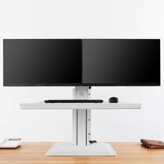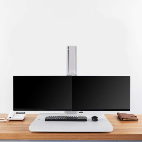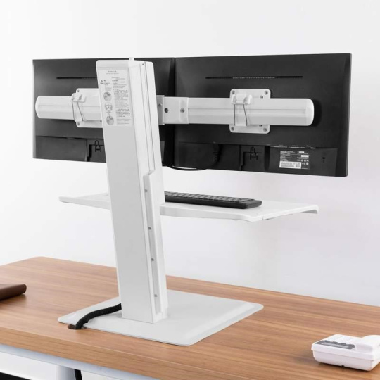 Stolná pracovná stanica pre 2 monitory Fiber Mounts ST15-2AW Profesionálna pracovná stanica na 2 monitory 19-27" pre prácu sedke alebo v stoji Pracujte kedykoľvek sedke alebo v stoji - zlepšite svoje pracovné pohodlie a urobte niečo pre svoje zdravie. Profesionálna pracovná stanica na 2 monitory ST15-2AW umožňuje vďaka pokročilému systému veľmi jednoduché a rýchle nastavenie výšky monitorov do požadovanej polohy pre prácu sedke alebo v stoji. Luxusné biele prevedenie podčiarkuje úplne vynikajúcu kvalitu. Záruka 5 rokov. Profesionálna kancelárska stolná pracovná stanica na 2 monitory pre prácu sedke alebo v stoji Fiber Mounts ST15-2AWKancelárska stolná pracovná stanica výškovo polohovateľná pre prácu sedke alebo v stoji Fiber Mounts ST15-2AW Technické údaje: celková maximálna hmotnosť monitorov 11kg na monitory s uhlopriečkou 19-27" podporuje VESA štandardy 75x75 a 100x100 nastavenie výšky monitorov od police na klávesnicu a myš 0-110mm zmena výšky pre prácu sedke alebo v stoji 0-450mm vyššia produktivita práce, zdravší štýl práce unikátny pokročilý systém pre veľmi jednoduché a rýchle výškové polohovanie možnosť nastavenia náklonu monitorov +15° až -3° polica na klávesnicu a myš, rozmer 690x495mm esteticky ukrytý USB port funkcia pivot (rotácia monitorov o 360°) nádherný dizajn v bielom prevedení najvyššia kvalita, bezpečnosť a stabilita na pracovnom stole stačí voľné miesto s rozmermi 450x480mm záruka 5 rokov Stolná pracovná stanica pre 2 monitory do kancelárie alebo pracovne pre jednoduchú a rýchlu zmenu práce sedke alebo v stoji Fiber Mounts ST15-2AW Pracovná stanica pre 2 monitory ST15-2AW podporuje VESA štandardy: VESA 75x75 VESA 100x100 Pracovná stanica na 2 monitory pre prácu sedke alebo v stoji Fiber Mounts ST15-2AWPracovná stanica na 2 monitory pre prácu sedke alebo v stoji Fiber Mounts ST15-2AW Pracovná stanica na 2 monitory pre prácu sedke alebo v stoji Fiber Mounts ST15-2AWPracovná stanica na 2 monitory pre prácu sedke alebo v stoji Fiber Mounts ST15-2AW