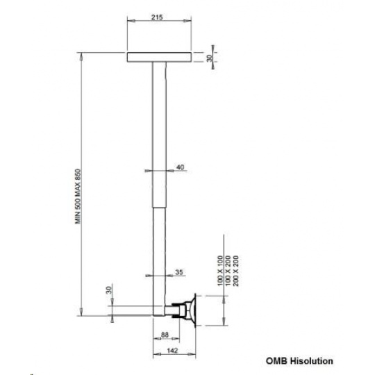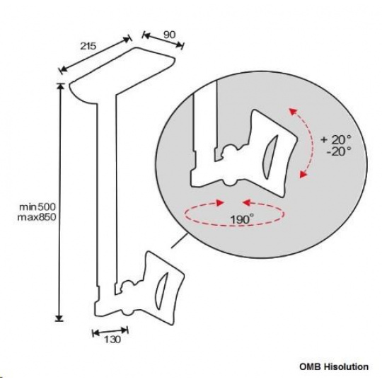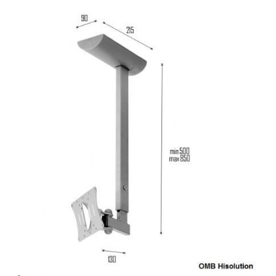 Držiak na zavesenie TV a monitorov s uhlopriečkou 17-42" na strop, dĺžkové nastavenie Cenovo dostupný stropný držiak TV alebo monitora, ktorý je výborného spracovania a kvality. Držiak Vám umožní plnohodnotné nastavenie polohy obrazovky: otáčanie do strán, náklon alebo výškové polohovanie. Vďaka krytke je možné aj ukotvenie za sadrokartónový strop - priechod zakryjete. Káblovú inštaláciu je možné viesť vo vnútri držiaka. Na výber máte zo dvoch farebných variánt: čierny alebo strieborný. Držiak podporuje VESA štandardy 75x75 až 200x200, možné je za príplatok rozšírenie VESA až na 400x400. Držiak je vhodný na všetky typy televízorov aj monitorov s hmotnosťou do 20kg, odporúčaná uhlopriečka je 17-42", s rozšíreným VESA štandardom až na 52". OMB Hisolution - stropný držiak televízie monitoru - originál od OMB Technické údaje: nosnosť 20kg na televízory a monitory 17" až 42" sklopný nahor aj nadol +20° / -20° otočný do strán +95° / -95° nastaviteľná dĺžka ramena 50-85cm vysoká kvalita spracovania možnosť vedenia káblovej inštalácie vo vnútri držiaka krytka stropného uchytenia farba čierna alebo strieborná záruka 2 roky Stropný držiak na televízory a monitory OMB Hisolution čierny Stropný držiak TV alebo monitoru OMB Hisolution podporuje VESA štandardy: VESA 50x50 VESA 75x75 VESA 100x100 VESA 200x100 VESA 200x200 Pri zakúpení rozšírenia VESA štandardu bude držiak podporovať aj VESA štandardy: VESA 300x200 VESA 300x300 VESA 400x200 VESA 400x300 VESA 400x400 Držiak je vhodný na všetky typy televízorov aj monitorov, ktoré majú hmotnosť do 20kg a ktoré podporujú niektorý z vyššie uvedených VESA štandardov v rozmedzí 50x50 až 200x200, pri zakúpení rozšírenia podporujú VESA až 400x400.