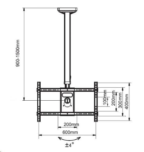 Technické údaje: nosnosť 45,5kg na Televízor 32" až 60" VESA štandard 200x100 až 600x400 nastaviteľná vzdialenosť od stropu 900-1500mm nastavenie sklonu obrazovky +2° / -20° otáčanie televízora do strán +/-360° korekcia roviny obrazovky systém skrytého vedenia káblov TOP kvalita krásny dizajn farba čierna záruka 5 rokov Stropný držiak Televízora Fiber Mounts SDT3260 podporuje VESA štandardy: VESA 200x100 VESA 200x200 VESA 200x300 VESA 200x400 VESA 300x200 VESA 300x300 VESA 400x200 VESA 400x300 VESA 400x400 VESA 600x200 VESA 600x300 VESA 600x400