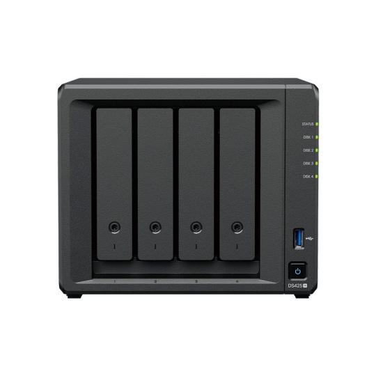 DS425+ poskytuje výkonnú funkčnosť v kompaktnom dizajne so 4 pozíciami, ktorý je priateľský k pracovnému stolu. Vstavaná 2.5GbE sieťová konektivita zabezpečuje vynikajúce rýchlosti siete ihneď po vybalení. Poháňaný systémom Synology DiskStation Manager (DSM), DS425+ slúži ako všestranné riešenie typu všetko v jednom na zdieľanie dát, synchronizáciu, zálohovanie a dohľad.