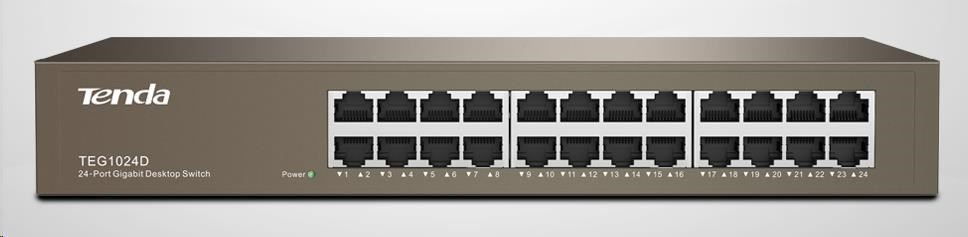 Tenda TEG1024D 24-portový gigabitový ethernetový prepínač, 10/100/1000 Mb/s, bez ventilátora, montáž do racku