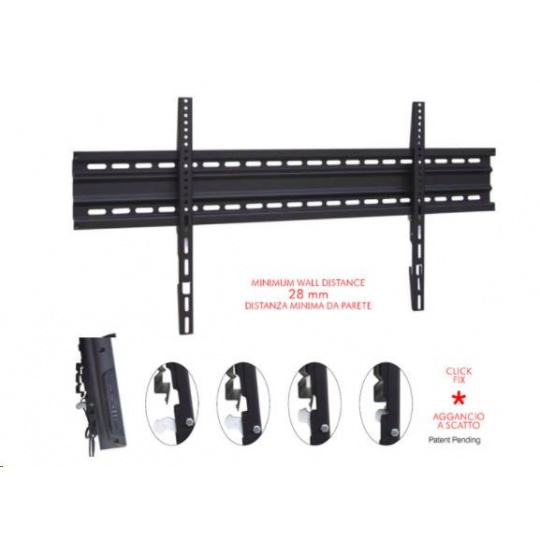 Veľmi kvalitný fixný držiak na stredne veľké a veľké LCD plazmové LED televízory. Držiak je veľmi kvalitný a uspokojí aj najs náročnejších zákazníkov. Technické údaje: nosnosť 60kg vzdialenosť od steny len 28mm vhodný na TV, monitory a displaye 40" - 85" VESA štandardy 100x100 až 800x400 vysoká kvalita snadná montáž farba čierna záruka 5 rokov Držiak podporuje VESA štandardy: VESA 100x100 VESA 200x100 a 100x200 VESA 200x200 VESA 300x100 a 100x300 VESA 300x200 a 200x300 VESA 300x300 VESA 400x200 a 200x400 VESA 400x300 a 300x400 VESA 400x400 VESA 500x300 VESA 600x400 VESA 800x400 Držiak OMB Slim 800 je ideálny na zavestenie všetkých televízorov, monitorov a signage display s hmotnosťou do 60kg a VESA štandardy v rozmedzí 100x100 až 800x400. Uhol nie je podstatný.